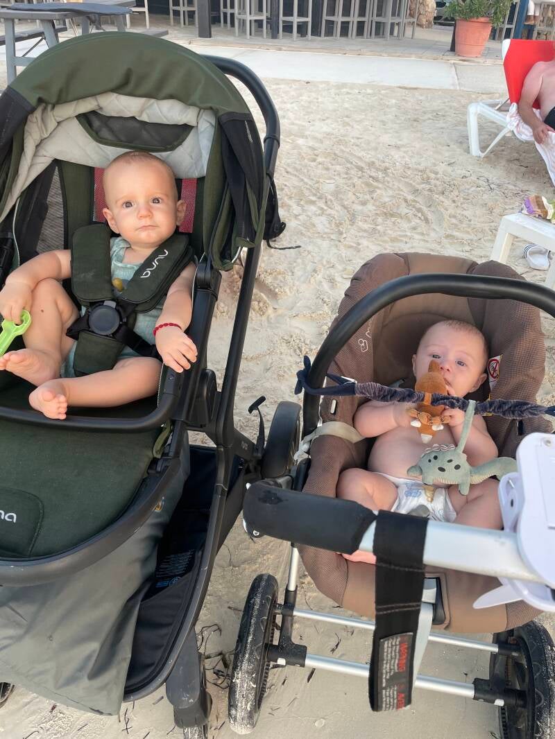Dinsdag middag met zijn allen op het strand. Neal vind de zee zo leuk!