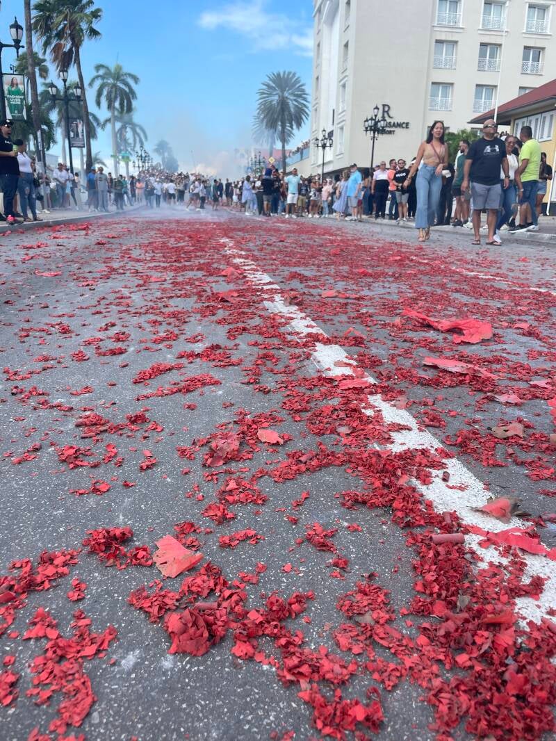 Zondag voelde Tom zich gelukkig eindelijk weer wat beter en daarom reden we tegen 12 uur naar Oranje Stad. Op Aruba hebben ze een traditie waarbij ze letterlijk met een BIG BANG het jaar uit gaan. Op verschillende locaties en tijden worden er vanaf 29 december pagara’s afgestoken. Vanuit Nederland ken ik wel een duizendklapper wat opzich al vrij heftig is maar dit? Van te voren hadden mensen gezegd ‘ oh nemen jullie Neal mee, weten jullie dat zeker? ‘ Ons antwoord daarop was dat we Neal inderdaad mee namen, met zijn koptelefoon op moest dat vast goed komen. Little did did we know. Het was een (goed georganiseerde) chaos. Het geluid was oorverdovend en Neal wou zijn koptelefoon niet op. Gelukkig kon Tom voor dat de knallen bij ons waren met Neal weg lopen. De pagara begon bij Paddock en eindigde voor Renaissance Mall wat een afstand is van 1,5 km over een brug. Voor zowel locals als toeristen was dit een big happening. Politie en beveiliging zorgen ervoor dat alles goed verliep en mensen niet te dicht bij de pagara in de buurt kwamen terwijl die af ging. Door de knallen en de rook en de mensen die van begin tot eind mee wouden lopen vond ik het wel vrij heftig maar super tof om mee te maken. Om 18:00 hadden we het huis versierd en kwamen Toon, Kady en Ted voor oudjaarsavond. We aten heerlijk een door Toon gemaakt broodje pulled chicken en telden af om iets voor 19:00 met de top 2000 om met de kindjes het Nederlandse nieuwjaar te vieren. Papa en mama belden, en ook Iris en Joyce. Gek dat in Nederland het al 5 uur eerder 2024 was. Ook Toon en Kady belden met familie in Nederland om hen een gelukkig nieuwjaar te wensen. Daarna brachten we de kids tegen kwart over 7 naar bed waar Neal gewoon tot de volgende ochtend heeft door geslapen. Echt serieus hij gaf geen kik en is niet wakker geworden van al het vuurwerk. Zo trots op het mannetje. Rond half 9 kwamen de rest van onze eiland vrienden aan en al gauw hadden we de tuin weer gezellig vol. Omdat de meesten zonder kids om 00:00 op het strand wouden zijn namen we om 23:00 afscheid. Toon en Kady bleven bij ons, we ruimden een klein beetje de boel op en bereiden ons voor op 00:00. Tom had het al gezegd ‘ wij hebben echt het beste uitzicht ‘ maar het overtrof alles. Om 10 voor 12 klommen we op het dak van ons huis en telden we af naar het nieuwe jaar. We proosten en genoten van het WAANZINNIGE uitzicht. We hadden 360 graden view over het eiland waar overal vuurwerk de lucht in ging. We wisten niet waar we moesten kijken en waren letterlijk allemaal sprakeloos. Toen om half 1 het weer rustiger werd besloten Toon en Tom nog wat eigen vuurwerk af te steken, slim want om 1 uur kwam het met bakken uit de lucht. Roos, Martijn en hun bezoek belden of ze nog terug konden komen of wij nog op waren. Op het strand was het chaos geweest, duizenden mensen en meer dan een half uur op je drinken wachten en nu met de regen was de lol er wel af. Uiteindelijk bleef het bij ons nog lang gezellig!