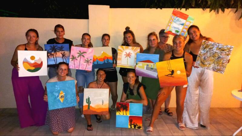 Vrijdag probeerde ik nog een keer de perfecte oreobonbon te maken maar helaas. Witte chocolade smelt gewoon niet. En het resulteerde weer in meer een oreo rotsje dan een bonbon. Gelukkig viel het die avond bij de bootgroep vrouwen (alle vrouwen/vriendinnen van Tom’s collega’s) wel in de smaak. Zoals ik al eerder zei hadden we vanavond sip en paint gepland staan. Kayleigh kwam met het idee en stelde haar huis open, onwijs lief! Volgens mij was dit voor het eerst sinds wij hier op het eiland wonen dat alle vrouwen samen waren. Het was zo gezellig. De naam verraad het al een beetje maar we gingen schilderen en drinken. Iedereen had een hapje gemaakt en na dat we waren bijgekomen van “ begin-angst” want ja hoe begin je en wat ga je maken? Zat na een goed half uur iedereen vol overgave te schilderen. We praten en lachten en de resultaten mogen er zijn.