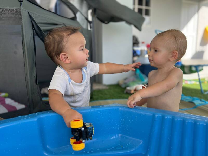 We begonnen de week rustig aan met een kop thee in bed, Meatball en Neal raken steeds meer aan elkaar gewend en dat is zo leuk om te zien. Neal mag hem nu zelfs (vrij hardhandig soms) aaien en echt mijn hart kan het maar amper aan zo schattig die twee samen. Daarna kregen we post uit Nederland, kaarten van tante iris en oom Jordy, opa en oma en twee kaarten van opa Dick. Zo leuk en Neal luisterde aandachtig toen ik de kaarten voorlas. De rest van de middag brachten we buiten door, ik vulde de schelp met een bodem water zodat Neal daar in kon spelen. Na een uurtje begon onze Hollandse baby het koud te krijgen dus vulde ik de waterkoker om zo het water een beetje meer op temperatuur te brengen. Giet ik toch vervolgens dat bijna gekookte water over mijn hand.. wat een hel! Meteen gekoeld waardoor het gelukkig bij een eerstegraadsverbranding bleef, maar voelde me zo’n kneus.. Nu een ruime week later begint de verbande plek te vervellen en heb ik er sinds een paar dagen gelukkig ook geen last meer van.