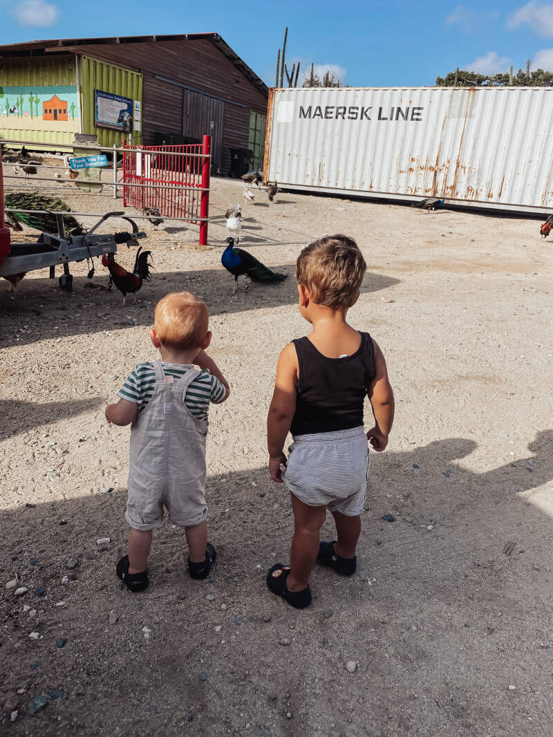Zondag begon (sorry oma voor mijn woordkeuze) KUT. Een eiland brede black-out zorgde voor geen stroom, dus geen airco en ook kwam er maar een minie straaltje water uit de kraan. Helemaal top! Gelukkig kwam Shin met het idee om eten in te pakken en naar het strand te rijden. Zo gezegd zo gedaan had ik alles ingepakt en wil ik net in de auto stappen toen ik er achter kwam dat onze poort ook elektrisch is en dus niet op ging. Geen idee hoe hij handmatig open ging belde ik Shindy in tranen op. Het was echt even mijn ochtend niet met een constant huilend kind en dan ook nog dit. Gelukkig zei ze meteen dat ze ons zou komen ophalen en ongeveer een half uur later zaten we op het strand. Heerlijk, dit deed me echt goed. Neal trouwens ook want toen er eenmaal ontbijt in zat en hij lekker met auto’s kon spelen was ook zijn huilbui weer over. Na een black-out van bijna 4 uur was om 10 uur de stroom weer terug jeeej! Na dat we thuis waren afgezet stopte ik Neal in bed en ben ik zelf uitgebreid gaan douchen. Om 3 uur hadden we weer bij shin en de kids afgesproken. Het idee was om naar San Nicolas te rijden voor het kindercarnaval maar Oann had andere plannen, hij besloot een lange middagdut te doen en omdat ik tegen 5 uur richting de airport wou hebben we lekker thuis met de kids doorgebracht. En toen was het zo ver, een beetje zenuwachtig van enthousiasme reed ik naar de AirPort waar het gigantisch druk was, 5 Amerikaanse vliegtuigen landen tegelijk met TUI en dat betekende chaos. Na ruim een uur te hebben gewacht kwamen papa en mama de schuifdeuren door en toen kon ik de tranen niet meer bedwingen. 7 maanden voelde tot vanmorgen nog niet als zo lang, maar toen ik ze allebei weer kon vast houden merkte ik dat het een eeuwigheid was. Neal reageerde ook zo ontzettend leuk, hij begon meteen te lachen en stak zijn handjes naar ze uit! Zo fijn om die herkenning bij hem te zien. Eenmaal thuis brachten mama en ik Neal naar bed en sloten we de dag af met een stokbroodje en hadden we genoeg om bij te praten.